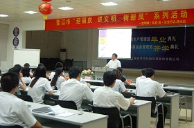 【本報(bào)訊】 為慶祝新中國(guó)成立60周年,進(jìn)一步開(kāi)展文明禮儀宣傳教育,營(yíng)造和諧人文環(huán)境,晉江市委文明辦決定通過(guò)文明禮儀進(jìn)校園、進(jìn)企業(yè)、進(jìn)社區(qū)和圖書(shū)漂流等活動(dòng),在全市開(kāi)展“迎國(guó)慶、講文明、樹(shù)新風(fēng)”系列活動(dòng)。我司有幸成為此次企業(yè)行活動(dòng)的首發(fā)站。