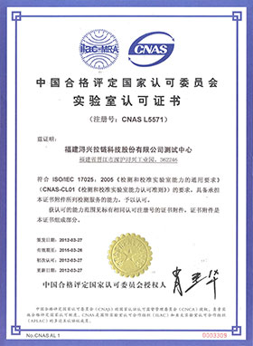 【本報訊】2012年3月27日,福建潯興拉鏈科技股份有限公司測試中心順利通過CNAS實驗室現(xiàn)場評審和資質(zhì)評定,成功獲得CNAS實驗室認(rèn)可證書,證書編號為No.CNASL5571。潯興測試中心從此躋身國家級實驗室行列,這是繼高新技術(shù)企業(yè)、國家級企業(yè)技術(shù)中心、國家專利工作交流站、全國企事業(yè)知識產(chǎn)權(quán)示范創(chuàng)建單位之后,潯興股份再次榮獲的國家級榮譽。至今,潯興是中國拉鏈行業(yè)唯一一家擁有國家級實驗室的企業(yè)。