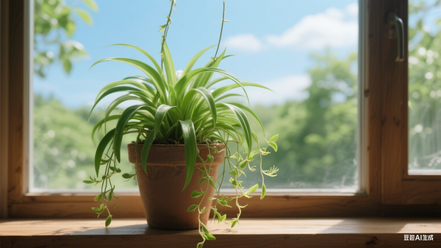 吊蘭 不知什么時(shí)候,臥室窗下的那盆吊蘭中,悄然綻放了一朵小花兒?;ǘ洳淮?,小巧玲瓏,一角硬幣大小。仔細(xì)看去,六個(gè)潔白如玉的花瓣,形狀卻有兩種:一種橢圓,一種細(xì)長(zhǎng)。兩種形狀的花瓣間次排列,圍成一個(gè)小小的花朵。陽(yáng)光下,花瓣邊緣閃著淡淡的銀光?;ò甑募舛宋⑽⑸下N,宛如芭蕾舞者踮起的腳尖,優(yōu)雅而俏皮。花朵的中央,立著幾條細(xì)長(zhǎng)的黃色花蕊,猶如仙子眼中的星光,明亮而耀眼。輕輕靠近,一股淡雅而清新的香味撲鼻而來(lái),令人心曠神怡。盆中的那些綠葉,像是忠誠(chéng)的侍衛(wèi),默默地守護(hù)著這位美麗的白衣仙子,頗有“萬(wàn)綠叢中一點(diǎn)白”的意味。窗外一陣微風(fēng)吹來(lái),白色的小花在綠葉叢中輕輕搖曳,似在翩翩起舞,又似在向我微笑致意。